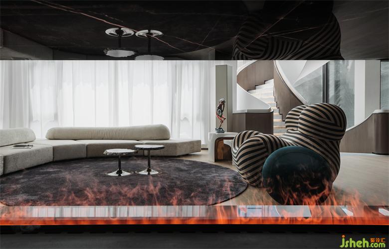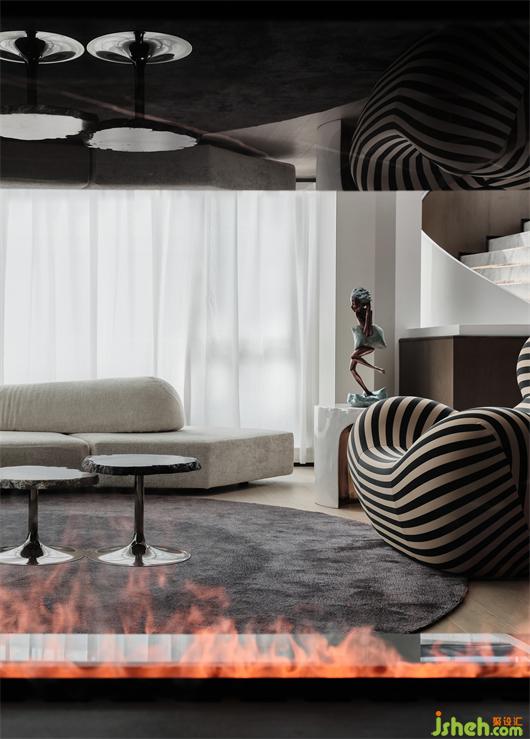 初入客廳,空間已烘焙出情緒升溫的味道。壁爐火焰夾雜著千百般對生活的奇思妙想,似不經(jīng)意讓生活與裝置間懂得融會貫通,站在這一方天地,心緒也被氤氳得妙不可言。