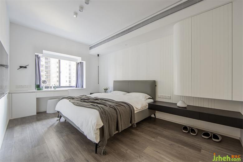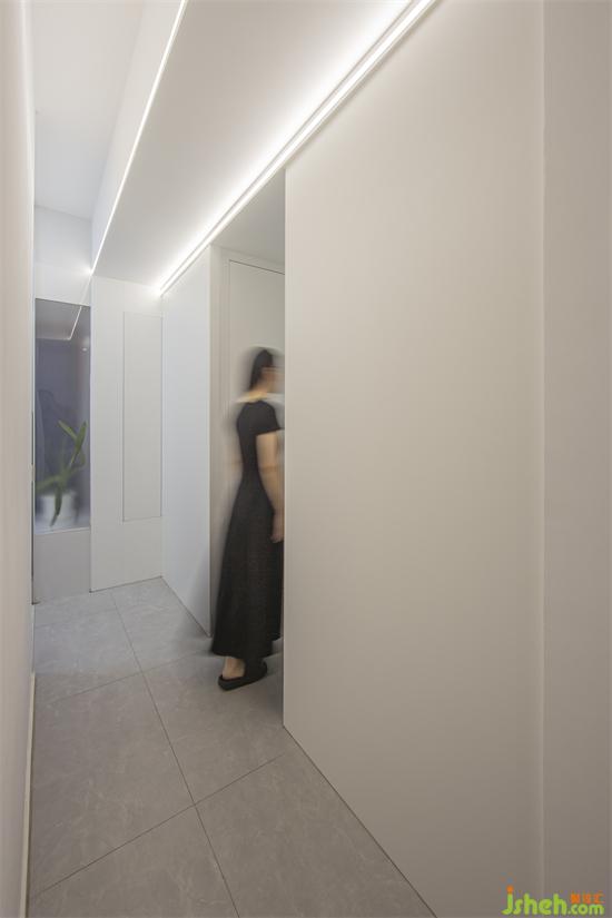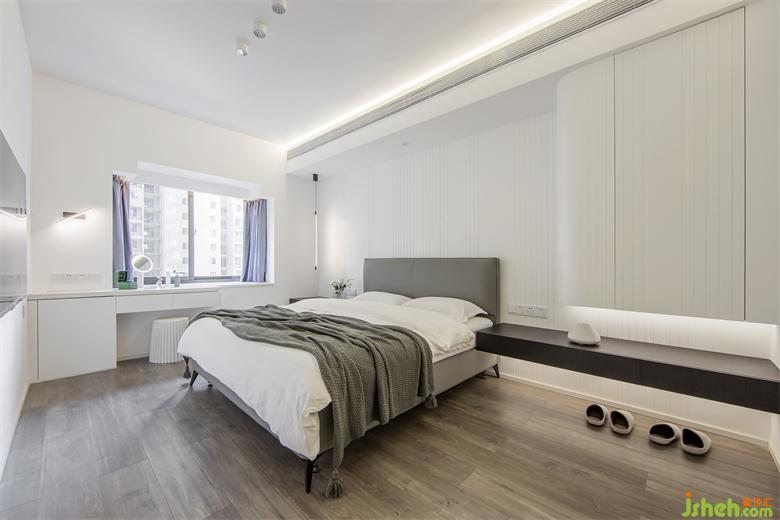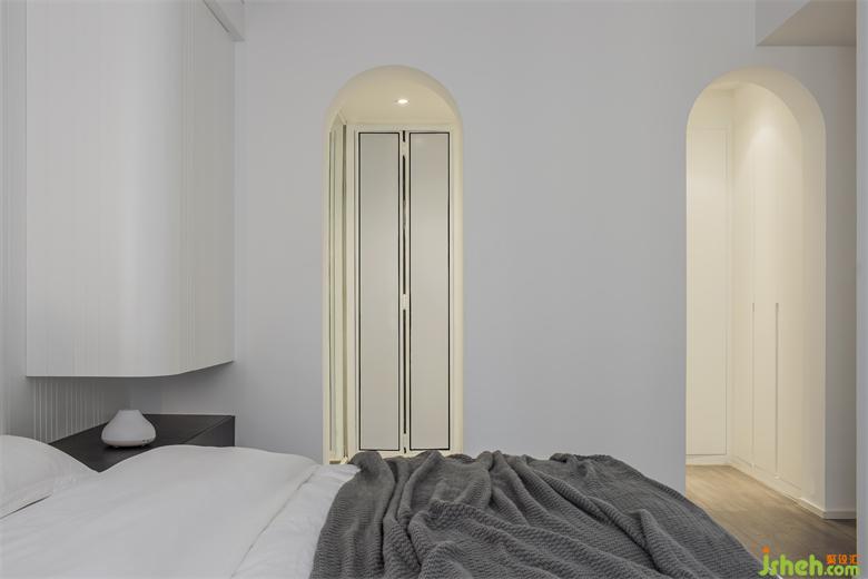主臥套間:入門(mén)對(duì)立的弧形懸空裝置貫穿床背景,加強(qiáng)了整個(gè)空間的橫線流室內(nèi)設(shè)計(jì)動(dòng)性。雙拱門(mén),給空間帶來(lái)探秘式的延展效果,衣帽間的回型動(dòng)線,自由無(wú)阻。