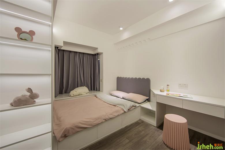 女孩房:大型收納給予小室內(nèi)設(shè)計(jì)空間小而不擠,“臟臟粉”詮釋著少女心。