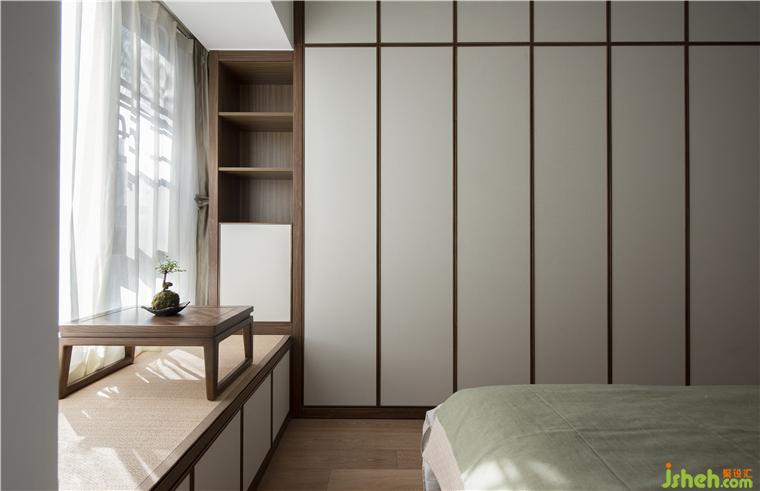 陽光透過窗戶灑入室內(nèi),暖意十足。窗戶下半部做成飄窗柜,增加收納儲(chǔ)藏空間。