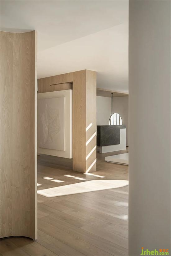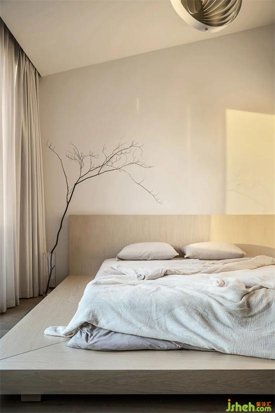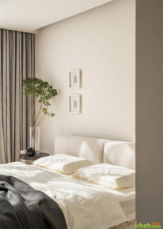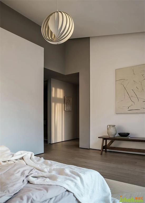Quietly elegant gray tone, warm light spread rhyme, bustling hidden by the peaceful painting and room. Bright spots are added between seemingly repetitive elements, paired with abstract paintings and soft fabrics, to express the spatial sentiment with modern and implicit Oriental rhythm, setting off a life realm that eliminates the sense of distance.