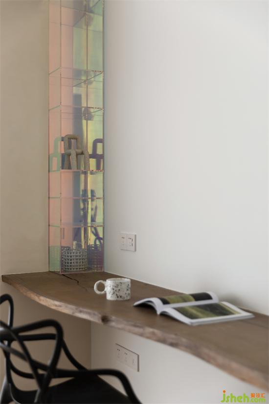 空間跳躍出斑斕的的藝術品擱架,江景大宅設計其中的趣味隨即展現(xiàn)。跳脫色彩的引入,體塊、線條、造型的運用,攜帶著光和影,在此間自由穿梭,生活的意趣就此彌散在臥室的每一個角落。