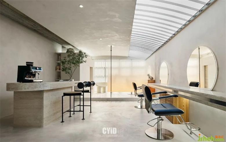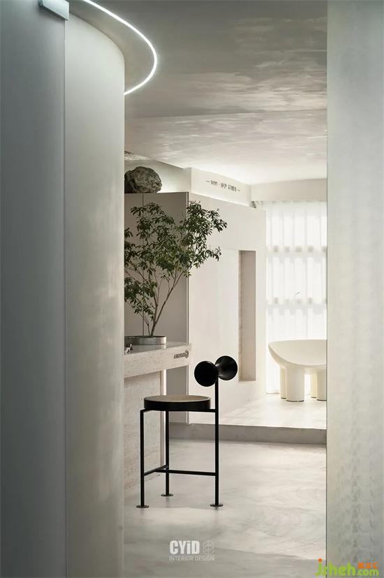 將進(jìn)門口內(nèi)移,預(yù)留過(guò)渡和商業(yè)店鋪設(shè)計(jì)緩沖的距離空間,與弧形劃分出的洗護(hù)區(qū)域相互配合成整體布局,靈動(dòng)的弧形與圓潤(rùn)的曲面元素由外至內(nèi),商業(yè)店鋪設(shè)計(jì)營(yíng)造了一個(gè)具有包裹感的進(jìn)門體驗(yàn),流暢的頂面圓弧造型與拱形門洞,激發(fā)了有限空間里的無(wú)限韻味,傳達(dá)出視覺(jué)空間的柔和與純粹,而臨窗的VIP室單獨(dú)抬高,賦予其獨(dú)立性,半透漸變隔斷增添異彩的同時(shí)讓內(nèi)外空間又產(chǎn)生聯(lián)結(jié)。