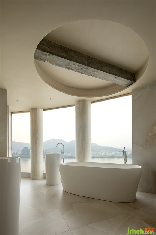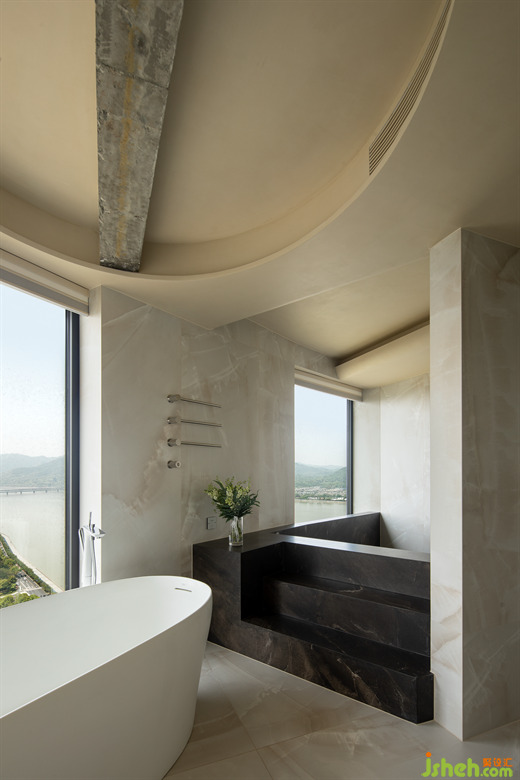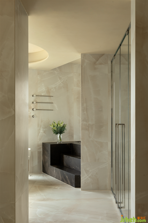 (主衛(wèi))綿延一片的素凈,肌理融合在空間氛圍之中,流暢的動(dòng)線和寬闊的視野賦予空間通透明朗,大宅設(shè)計(jì)大面積投入的自然光線讓整個(gè)空間有了呼吸,一個(gè)放松且無限創(chuàng)意的環(huán)境由此形成。