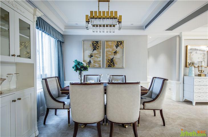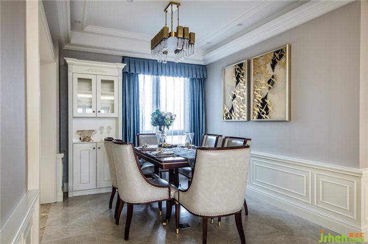 在客廳,素雅的墻紙與墻板線條之間勾勒出沉穩(wěn)與活力的交織,形成一片嶄新風格;地面暖白闡明格調(diào)的極簡美態(tài),留白的空間映襯裝飾鮮艷的金屬,提一抹質感時尚的金色為環(huán)境進行藝術加持,優(yōu)雅從容,精致如女主人。黃銅的精彩應用,盡情演繹了材質和精湛工藝所承載的文化和創(chuàng)意。完全開放式的設計,讓餐廳通透舒展。美學的細膩與干凈利落兩種矛盾屬性的碰撞,如居者所期許的那般,生發(fā)出了雋永的意味。