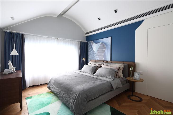二樓主臥原始結(jié)構(gòu)最低點(diǎn)僅僅只有2.2米,而最高點(diǎn)達(dá)到了4.25米。如此高的落差既要解決空調(diào)的出風(fēng)又要為環(huán)境增加照明需求。我們?cè)O(shè)計(jì)出弧形吊頂內(nèi)嵌燈帶,使得空間感、層次感更強(qiáng)。飛碟燈的光照角度補(bǔ)充了傳統(tǒng)射燈的劣勢(shì),弧形屋面燈光照明問(wèn)題得到很好地解決。利用斜型屋面頂部殘余空間安裝了中央空調(diào),最大程度利用有限的空間。局部軟裝的對(duì)比色跳了出來(lái)讓空間更溫馨。