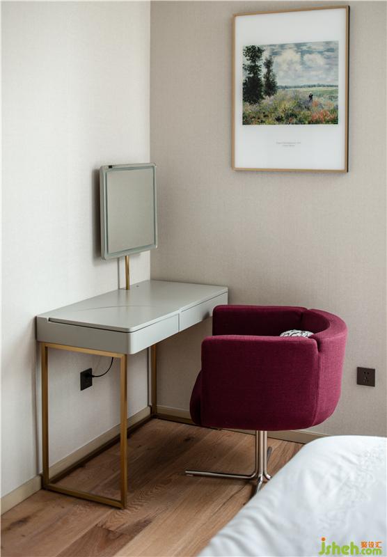 在整個空間中,以溫暖且富有溫度的木材和淺灰色環(huán)保墻紙相結(jié)合作為主色調(diào),局部以人造大理石點綴,通過視覺色調(diào)上達到的平衡,意在烘托出文雅與平靜的氛圍。當(dāng)暖色的燈光映襯著木質(zhì)的造型,柔柔的蘊色像把一切都覆上了溫暖,讓人充分的放松。