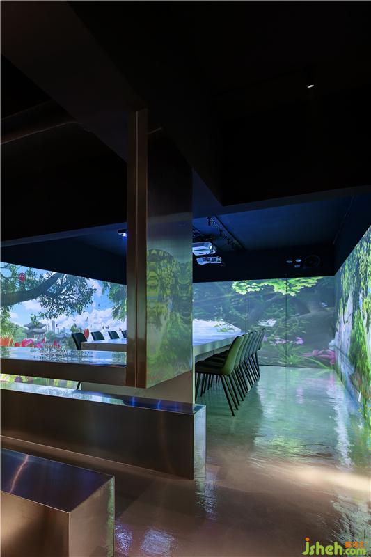 最后一個(gè)亮點(diǎn)是其270°液晶投影的設(shè)計(jì),2樓由于天生環(huán)境封閉,這樣的空間讓大部分感覺(jué)到不舒適。設(shè)計(jì)師針對(duì)這個(gè)弊端,大膽采用現(xiàn)代化投影設(shè)備進(jìn)行裝飾深圳裝修設(shè)計(jì),讓封閉的空間瞬間成為無(wú)限可能,山、湖、海、草原、落葉、飄雪,一切隨心而動(dòng)。