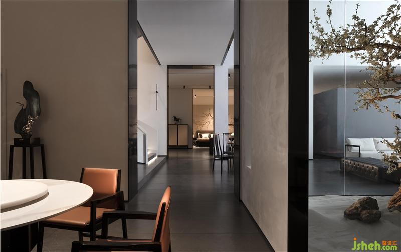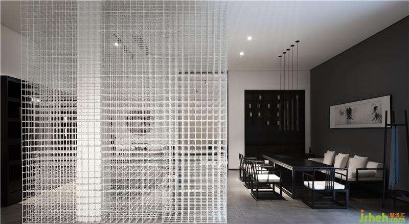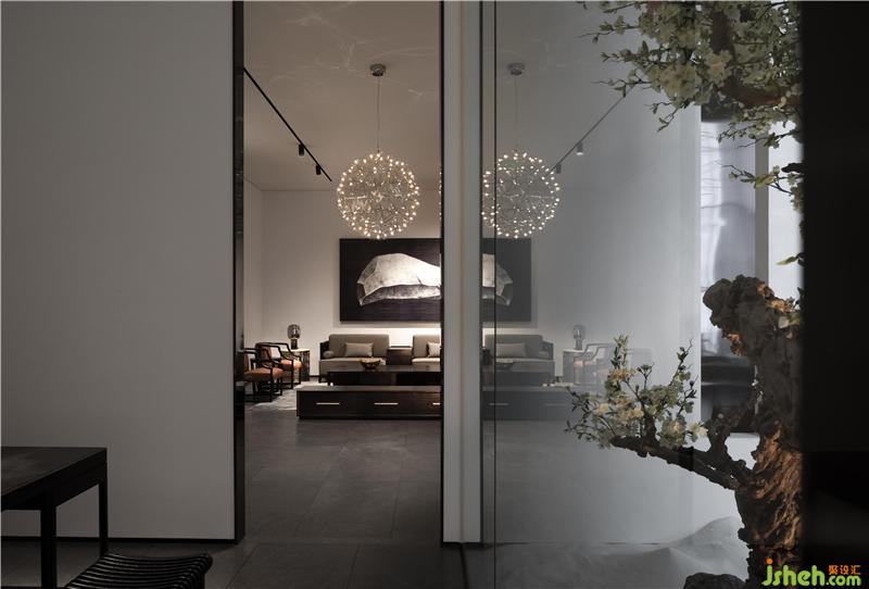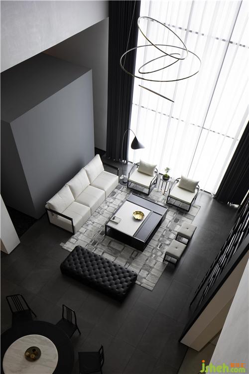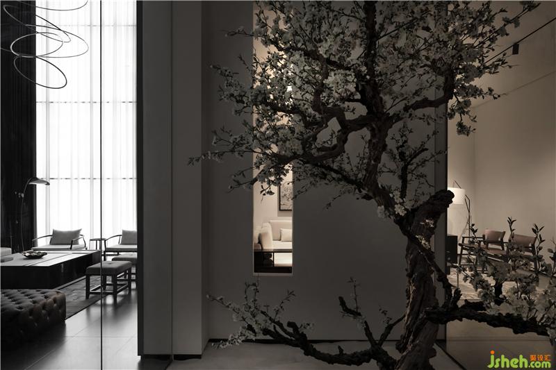 震撼的中庭挑高區(qū)域盈滿廣袤、純凈而安定的靜謐力量,一覽無疑,氣質(zhì)涌現(xiàn),將心放緩下來。上空大型圓形吊燈,高低錯(cuò)落中糅合出空間的比例之美。如雕塑般美感的白色鋼板樓梯連接上去空間,穿插于黑色空間中,用帶有邏輯的切割梳理了異材質(zhì)的沖突、重新搓揉空間的姿態(tài)。傳統(tǒng)濃重的商業(yè)氛圍于此得以弱化,在韻白的世界中打磨至美生活質(zhì)地。舍棄過多的裝飾造型,試圖利用黑白材質(zhì)的「本質(zhì)意象」去體現(xiàn)一個(gè)空間的風(fēng)格及層次。只需身在場(chǎng)域之中,便能體會(huì)其柔軟、強(qiáng)烈、安靜、亦或神秘;材質(zhì)線條于無形中界定了空間,形塑出一個(gè)全新、當(dāng)代的空間想象。