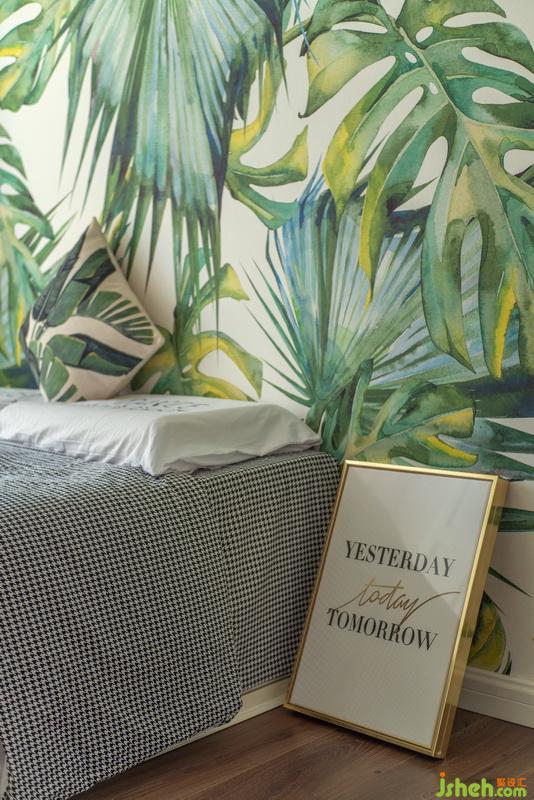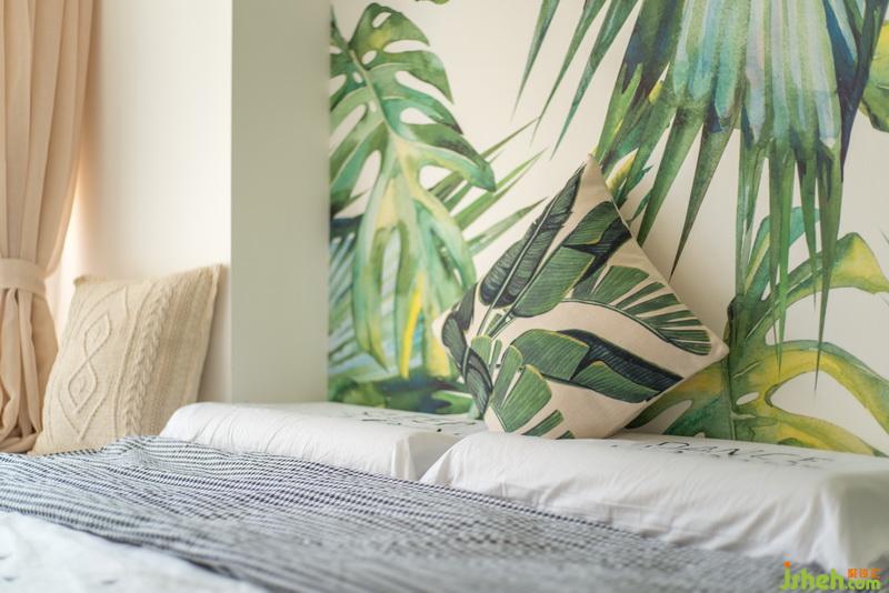 龜背竹與春雨帶著強(qiáng)烈的生機(jī)勃勃的氣息,讓整個(gè)世界彷如置身于熱帶雨林的世界。柔軟的米黃色窗簾與條紋床單為整個(gè)空間又增添了一些溫暖和寧?kù)o。室內(nèi)設(shè)計(jì)師