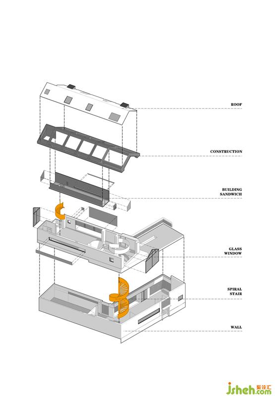 Since the original building site is strewn at random in height, forming a natural and rhythmic skyline, this design retains the irregular style of the original site to the greatest extent and adopts the multi-level generatrix design for achieving the elevation difference of the building structure; In order to enrich the view of the main landscape, we use the design of ramps and stairs to form multiple circulation generatrix.