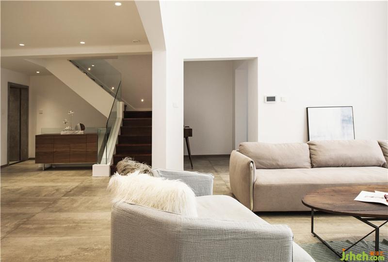 業(yè)主海外歸來(lái),工作繁忙。二人注重生活,注重品質(zhì),本案設(shè)計(jì)風(fēng)格定義為現(xiàn)代極簡(jiǎn),無(wú)復(fù)雜裝飾,追求實(shí)用,主要強(qiáng)調(diào)空間的整體性,風(fēng)格的統(tǒng)一性。提倡自然簡(jiǎn)潔和理性的規(guī)則,比例均勻、材料搭配、收口方式、通過(guò)虛實(shí)互換的空間形象,取得局部與整個(gè)空間的和諧,完整。“隱于咫尺喧囂,閑逸瀟灑”設(shè)計(jì)師便將這份寄托賦予這室內(nèi)空間中,希望二人在繁忙的工作可以擁有獨(dú)自思考的空間,于這靜謐的空間中享受片刻安寧。室內(nèi)墻面均采用白色藝術(shù)漆健康環(huán)保,地面選用仿古地磚突出質(zhì)感,樓梯及臥室選用實(shí)木地板觸感溫潤(rùn)利于休息,玻璃圍欄打造通透視感。衛(wèi)浴潔具均來(lái)自品牌保證品質(zhì)。整體家具以木質(zhì)亞麻為主營(yíng)造舒適自然之感