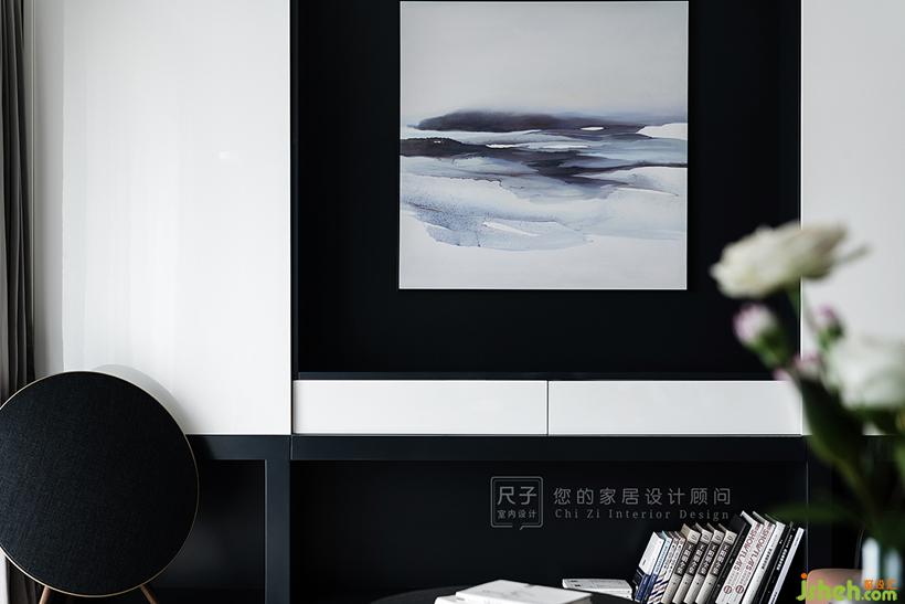 考慮到孩子教育問題,沒有局限于傳統(tǒng)的電視+沙發(fā)的客廳形式,以裝飾畫代替電視;預(yù)留好的插座線路,讓業(yè)主有了更多選擇。