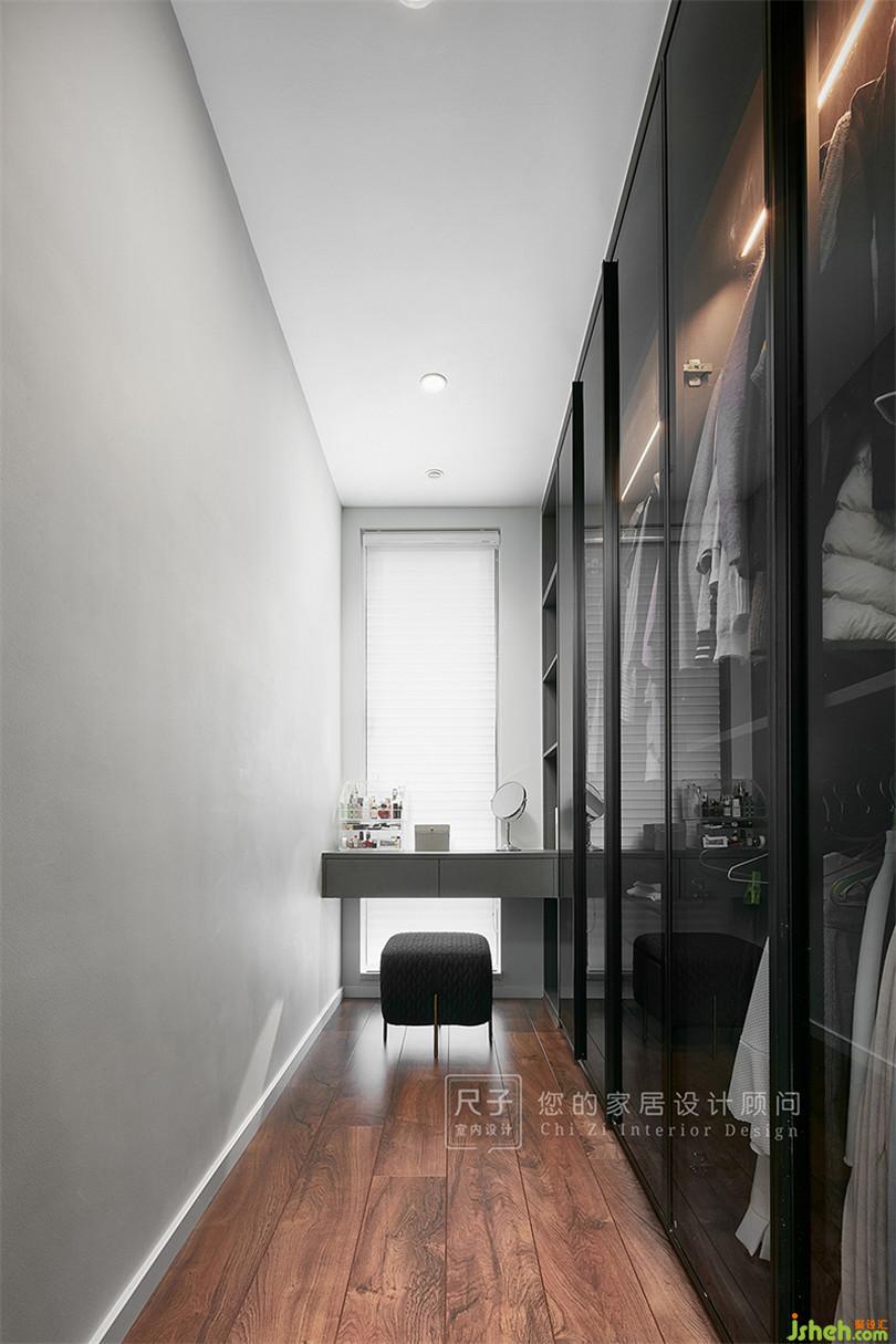 步入式的衣帽間,以玻璃柜門打造時尚氛圍,S小姐直言:有一種明星衣櫥的感覺。