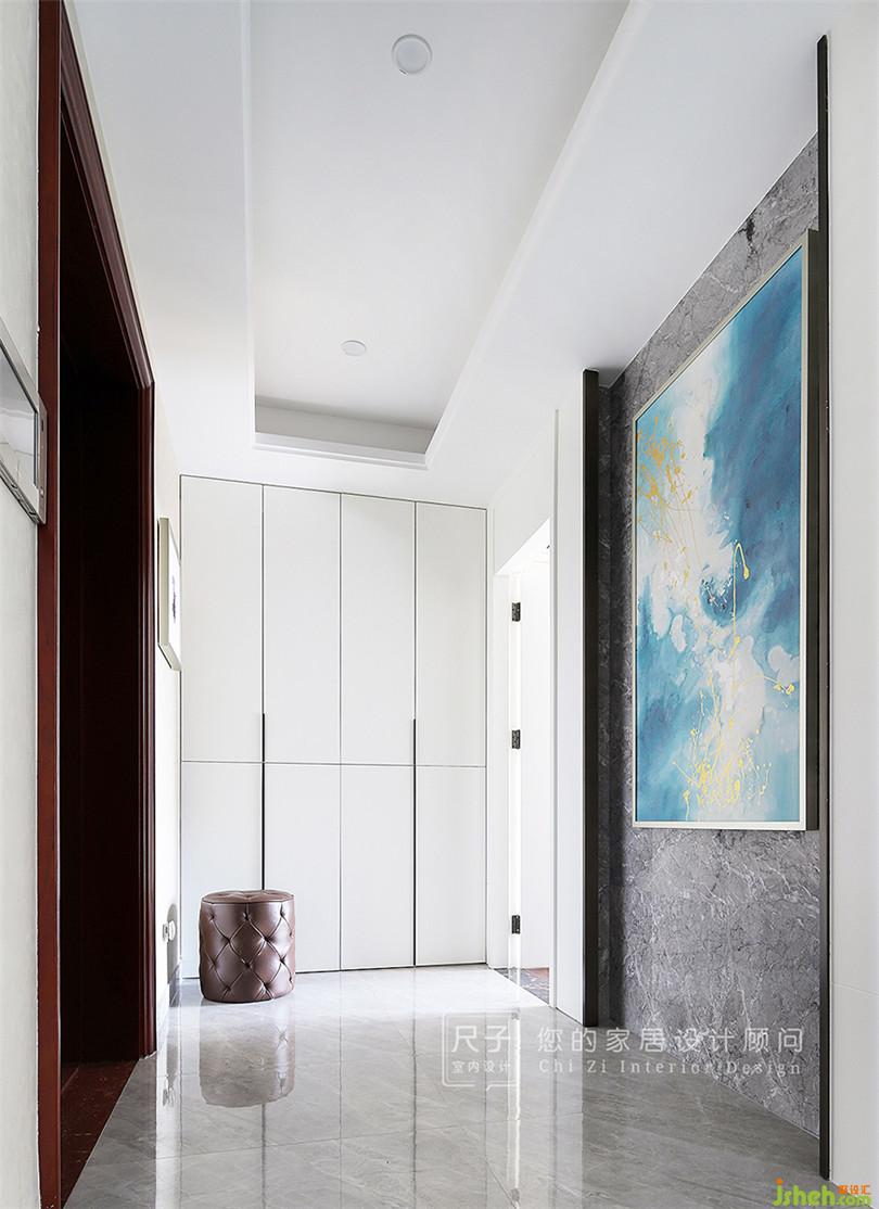 入戶玄關(guān)是連接室內(nèi)外空間的渠道,是來客對(duì)這個(gè)家的第一印象。在滿足其美觀度的同時(shí),也要考慮實(shí)用功能,因此做了到頂?shù)恼嫘瘢道值脑O(shè)計(jì)也保證了空間的整潔。