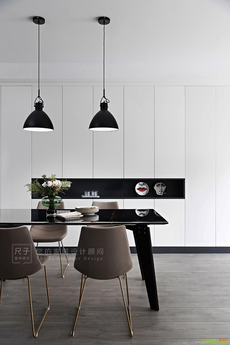 純凈黑的餐桌搭配咖色的皮質(zhì)座椅,再加上金色的點綴,使得空間充滿摩登時尚的氣息。