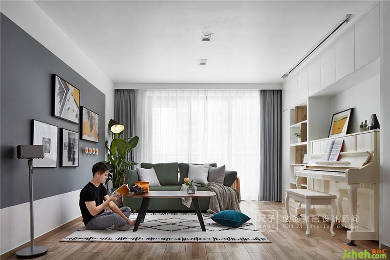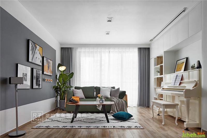 墻面局部分色的設(shè)計(jì)與大小不一的掛畫(huà)搭配,讓客廳氛圍滿滿。室內(nèi)設(shè)計(jì)師