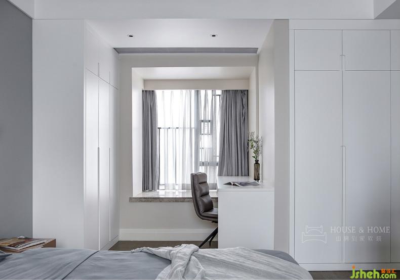 依飄窗搭建的閱讀區(qū),也是Z小姐的梳妝臺??紤]到實際需求,我們將衣帽間打通,釋放出的空間用來做主臥和次臥的兩面收納柜。