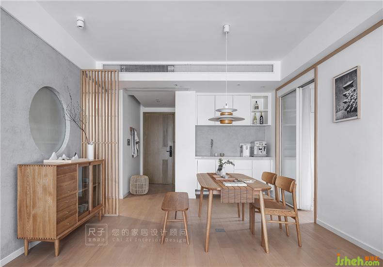 圓形造型端景,除了在功能上在可以將光線引入公衛(wèi)以及廚房,加強(qiáng)空間聯(lián)動(dòng)性外,更強(qiáng)調(diào)一種空靈、靜謐的居住禪意。室內(nèi)設(shè)計(jì)師