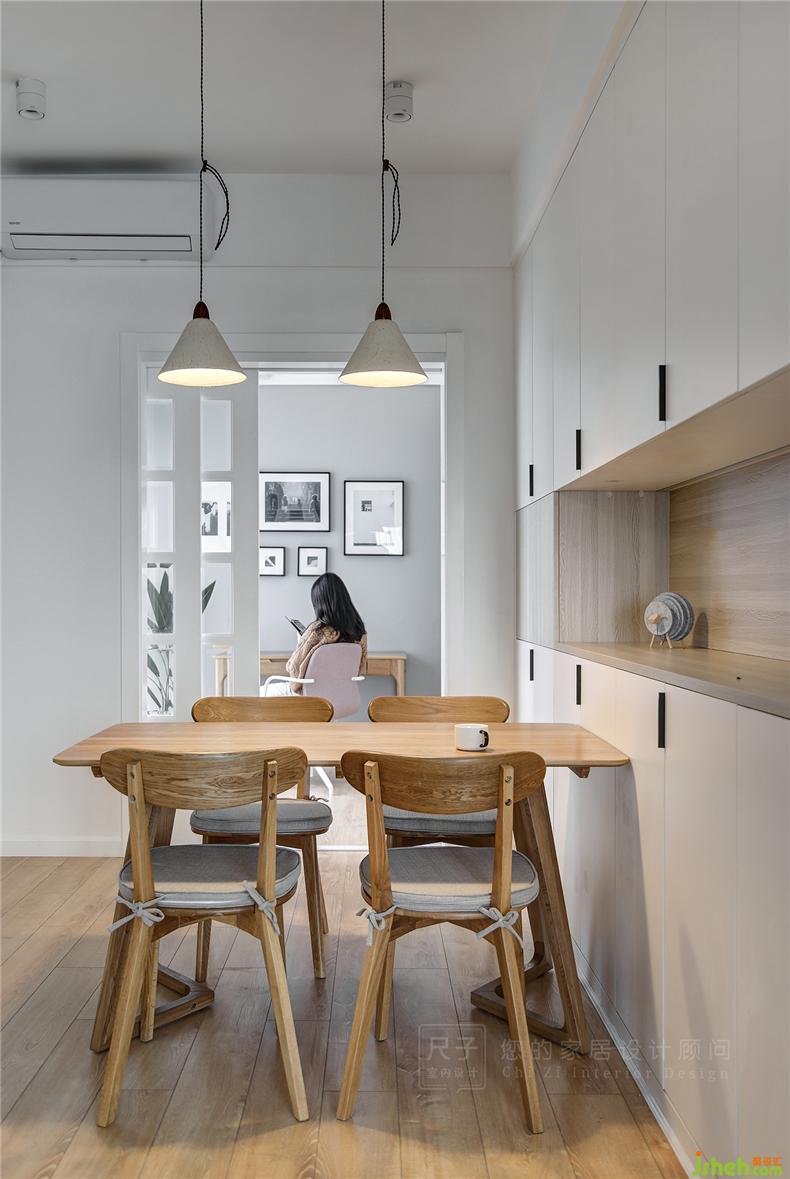 餐廳是由燈光與木色構(gòu)筑的自然空間,靈活輕便的餐桌可以隨意移動,不加拘束的擺放更契合餐廳空間大小