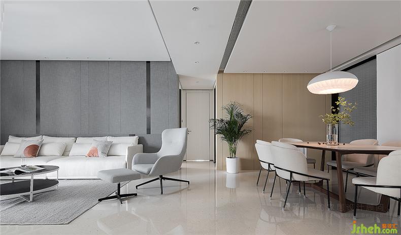 造型材質(zhì)的統(tǒng)一,讓客廳餐廳形成隱秘的關(guān)聯(lián)。室內(nèi)設(shè)計(jì)師