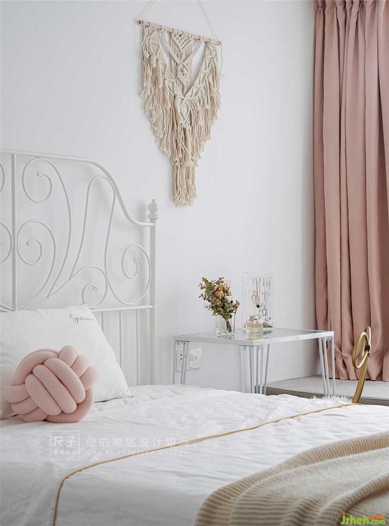 白色鋼質(zhì)裝飾以及曲線的魅力令人難以抗拒,當(dāng)其遇上通透的玻璃材質(zhì)更是充滿浪漫文藝感,些許粉色調(diào)的布藝裝飾,讓居住者安然進(jìn)入童話般甜美的夢鄉(xiāng)。