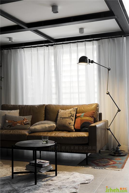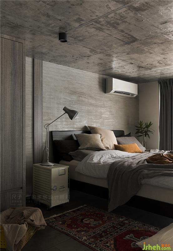 黑白灰、水泥墻營(yíng)造的冷靜克制氛圍,讓人不由得放慢節(jié)奏去思考;復(fù)古個(gè)性的床頭柜與地毯,柔軟舒適的床品抱枕,這些細(xì)節(jié)處的軟裝搭配又讓整個(gè)家在理性中不乏溫情。