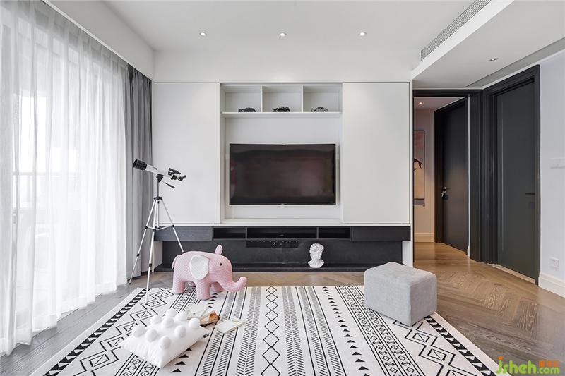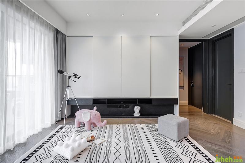 客廳電視柜和書柜結(jié)合,推拉柜門的設計可以讓電視可以藏起來,給孩子一個良好的閱讀環(huán)境。