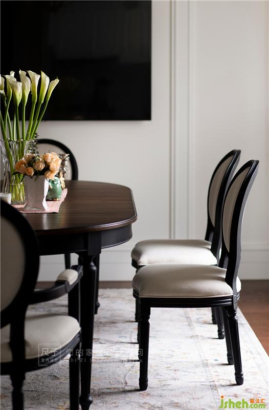 純凈的白色柜體與深色地板搭配,既穩(wěn)重又有清澈之感。