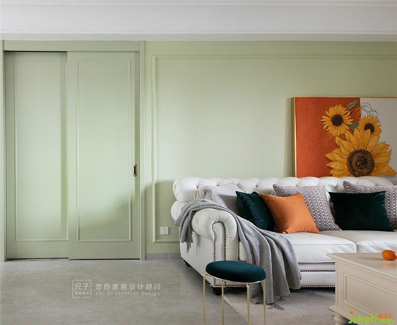 軟裝上,設(shè)計(jì)師減少復(fù)雜元素的堆砌,將業(yè)主喜愛的綠色融入到家居環(huán)境中,家居設(shè)計(jì)營造簡潔明快的視覺效果,溫馨與浪漫的居家氛圍。