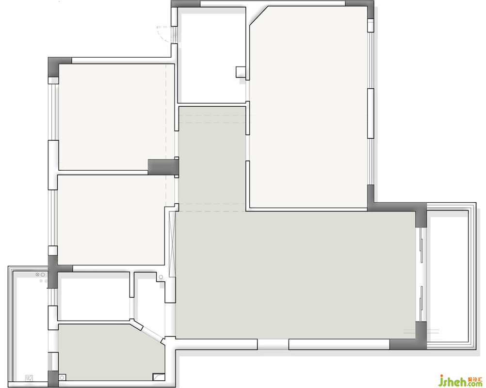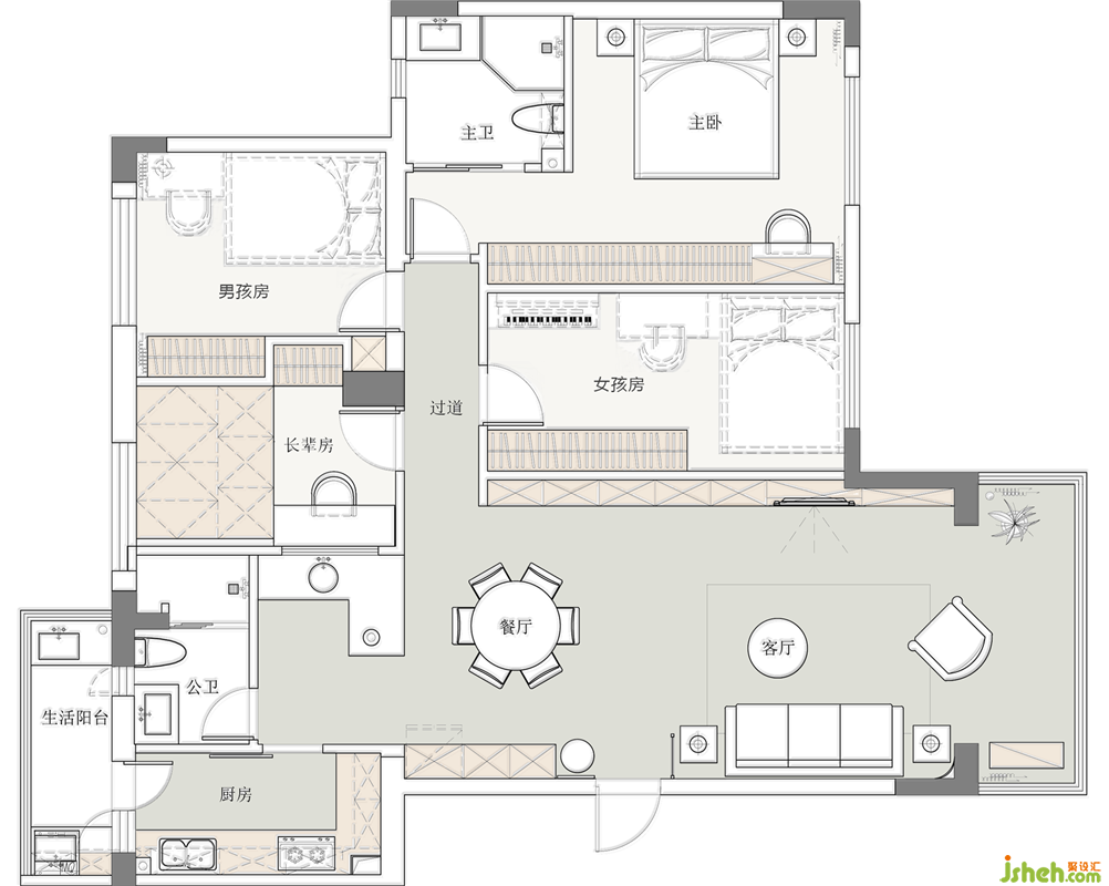 ③獨(dú)立的私人空間:過(guò)道墻面拆除,縮小過(guò)道面積,三房改四房滿足一家六口居住