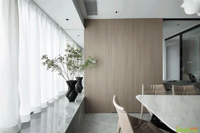 玻璃隔斷的深圳家居設(shè)計實現(xiàn)了空間的相互連貫,當(dāng)然只需拉上紗簾,這里又可以是獨立安靜的工作區(qū)。