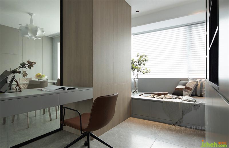 原本的推拉門封窗,深圳家居設(shè)計成獨立學(xué)習(xí)區(qū),銜接側(cè)面的一整排儲物柜,收納功能強大。