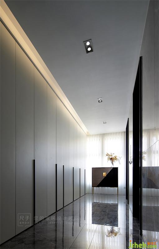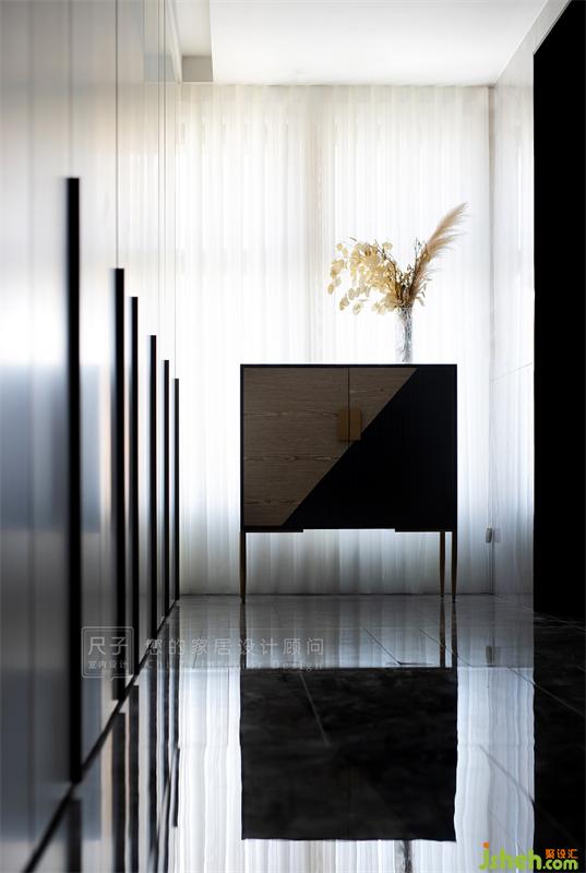 端景柜在光影的裝飾下,呈現(xiàn)深邃迷人的魅力,而最令人驚嘆的是一整排儲(chǔ)物柜,滿足一家人的居住收納需求。