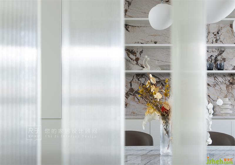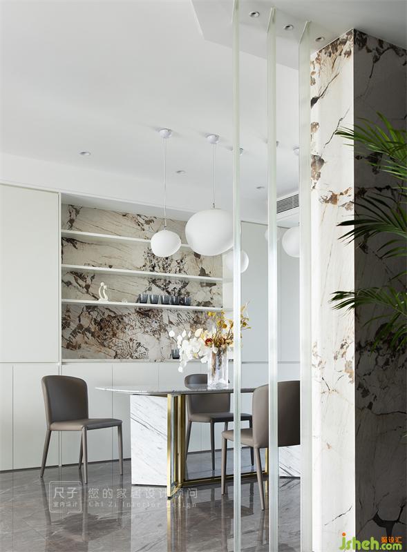 家居裝修以屏風為媒介,借此取景,將餐廳的景色嵌于這方寸之間;開放式的格局設計也讓餐廳與各個空間形成了良好互動,為一家人的日常交流提供了更為開闊的環(huán)境。