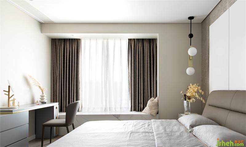 主臥的打造以靜謐舒適為主,讓居住者沉浸在米咖色調所帶來的溫暖氛圍中。