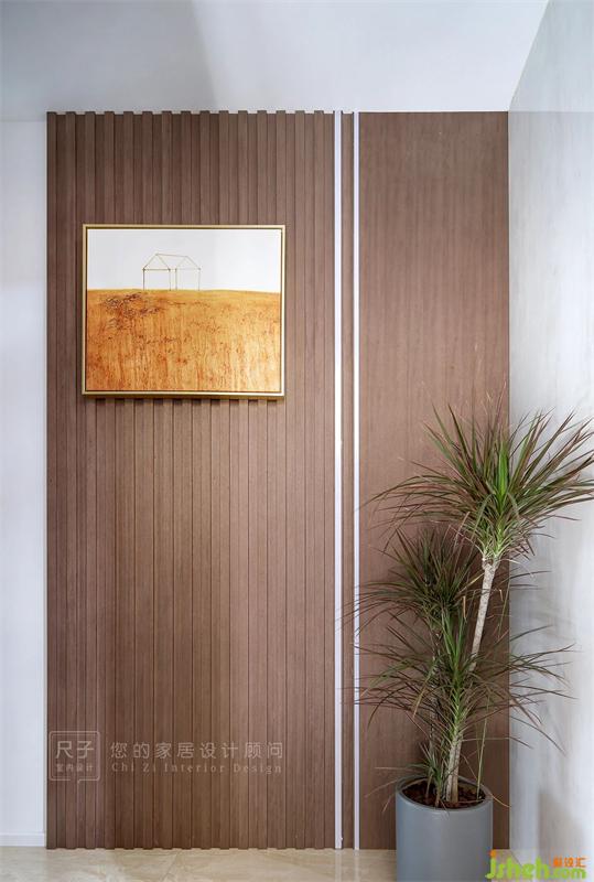 9.3㎡的儲物柜從玄關(guān)門洞延伸至客廳,滿足這個(gè)家對收納的需求;古樸的木色夾雜適度的灰,有一種悠悠古韻。