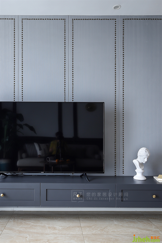 裝修設(shè)計(jì)拆除了原本的電視背景墻,做了硬包處理,搭配表面的柳釘裝飾,細(xì)致的裝扮讓空間更加輕松、柔軟。