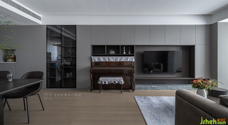 設(shè)計(jì)師以屋主一家的生活需求為核心,通過對空間布局的優(yōu)化,以及色彩材質(zhì)方面的把控,打造一個(gè)質(zhì)感與生活感并存的場所: