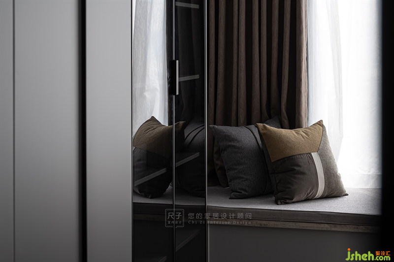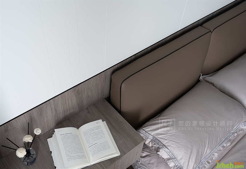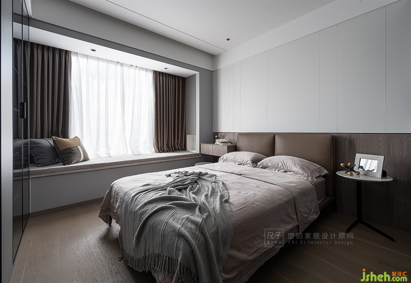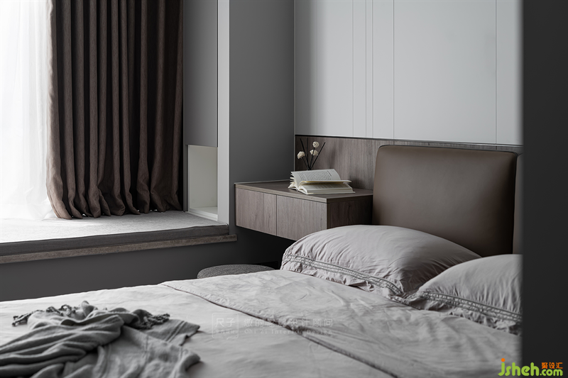 主臥延續(xù)了整體的風格,以線條和不同材質的拼接勾勒出寧靜雅致的氛圍。