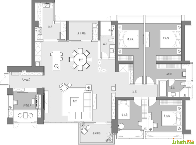 原房采光通風很好,但格局混亂,空間利用率低,我們通過調(diào)整布局,還原屋主心目中有質(zhì)感、不俗氣且實用的家: