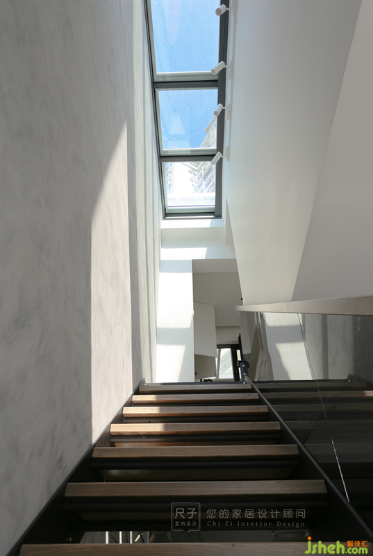 兒童房房頂以及樓梯頂部都做了鋁合金天窗,頂樓復(fù)式設(shè)計以增加空間采光,明亮利落的百葉簾,調(diào)節(jié)光影,控制著空間的情緒。