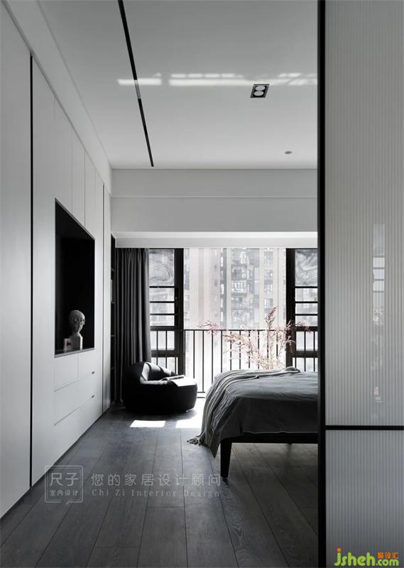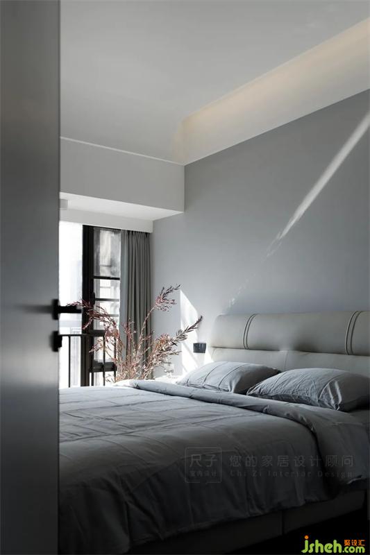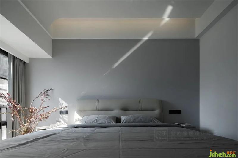 暖灰的墻面以及弧形天花設(shè)計(jì),營(yíng)造出淡雅柔和的自然空間,不經(jīng)意灑進(jìn)室內(nèi)的陽(yáng)光,給簡(jiǎn)約的臥室增添一抹暖意。