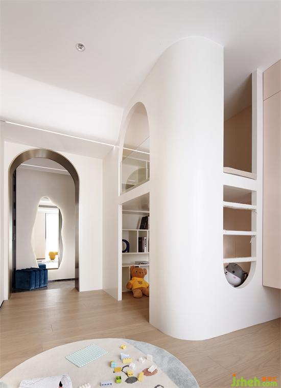 作為小朋友平時(shí)娛樂玩耍、閱讀的主要場(chǎng)所,深圳家裝設(shè)計(jì)活動(dòng)區(qū)通過弧形、柔和的線條來營造,“小城堡”增添了趣味性和互動(dòng)性。