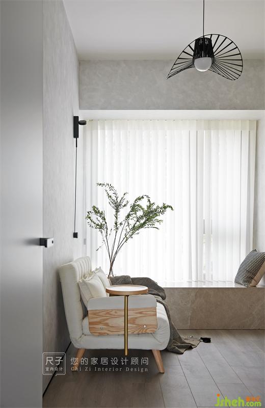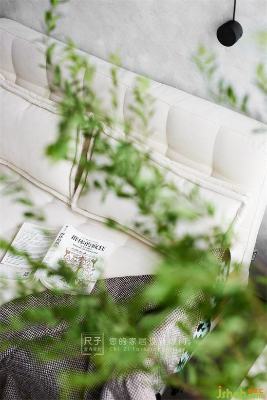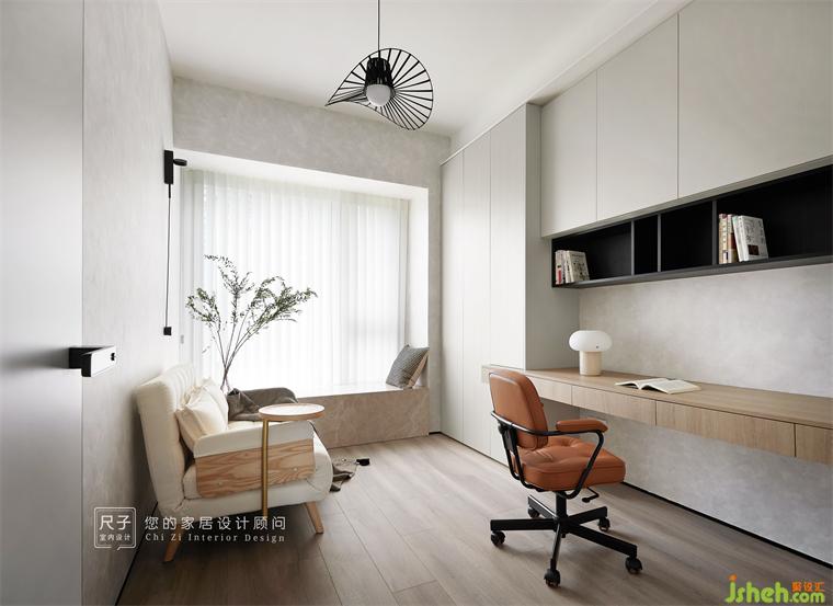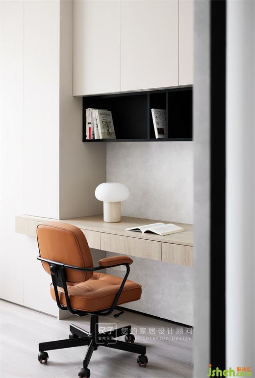 白+木色明度較高不壓抑,家裝設(shè)計(jì)綠枝賦予生命力,朦朧陽光為書房帶來一絲溫柔。