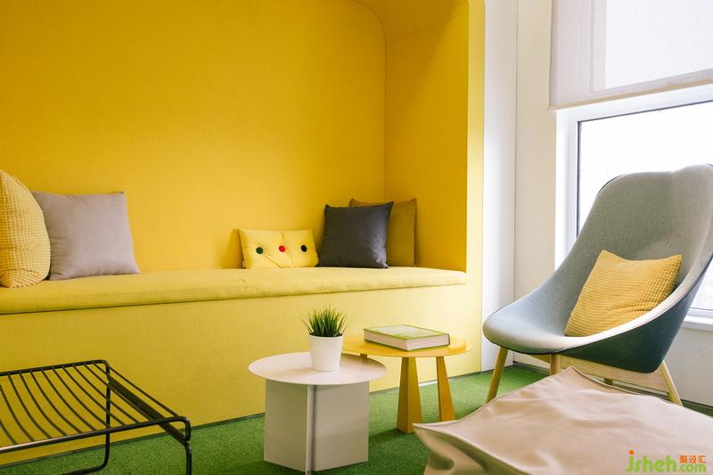 工作中難免有疲憊的時候,而對於釋放工作中的壞情緒,及時充電,休閑區(qū)就顯的得尤為重要。設計師選擇了黃色調作為主色調,為空間注入活力亦傳達了一種明媚溫暖的精神力量,嘿,喪一喪就過去了。