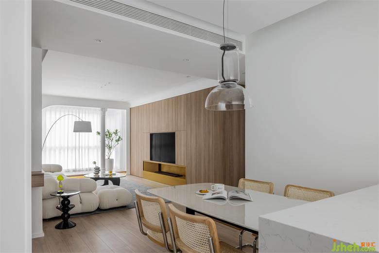 適當?shù)牧舭拙褪侨缤娪爸兴粝碌拈_放性結(jié)尾一般,平添無數(shù)遐想。在本項目設計中,天津天霖園裝修設計師運用了留白手法,大量的白色墻面留白,減去裝飾設計,增加了空間感,實現(xiàn)互動與休憩的精妙平衡,輕松舒適的居住環(huán)境在這里得到表達。