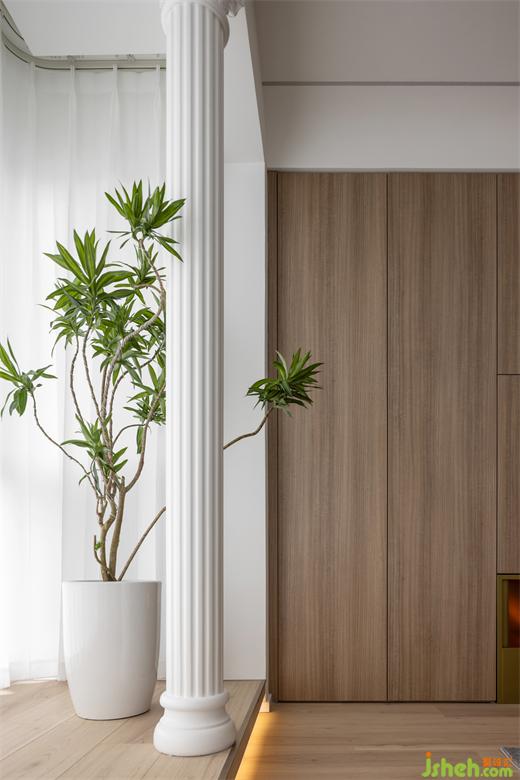 獨立的陽臺辟出一方靜謐天地,透過紗質(zhì)窗簾,光影斑斕,迎接滿屋的愜意陽光,一株綠植為此處注入勃勃生機,呈現(xiàn)出家與自然的巧妙融合。