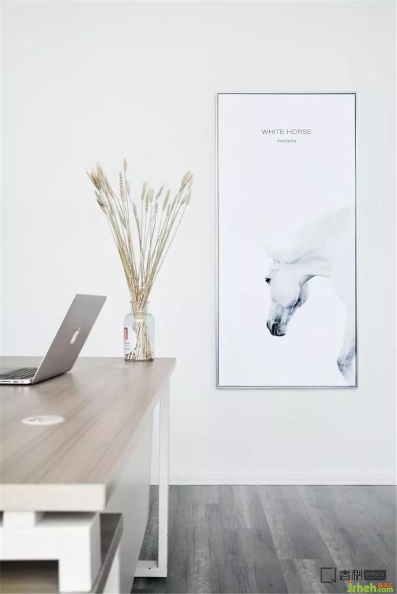 在大面通體的白色空間下,室內(nèi)設(shè)計師墻上元素的加入帶來了冷與暖的鮮明對比,溫潤的木色,帶來溫馨與舒適、放松的氛圍。