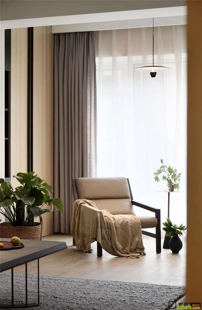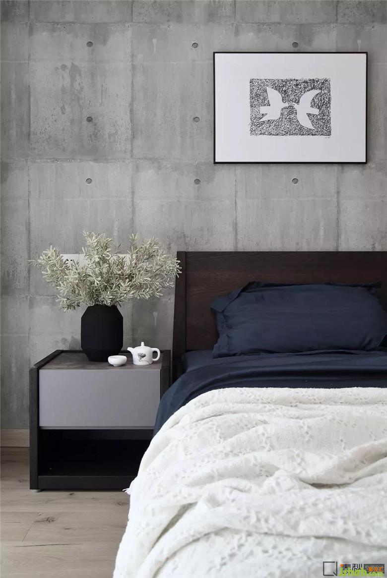 客臥設(shè)計(jì)十分簡潔,沒有多余裝飾,床品的色調(diào)和墻色保持一致,室內(nèi)設(shè)計(jì)師為了營造溫馨感和賓至如歸感,用淺色原木色與與其接近的裸色及駝色來打造。特別挑選的掛畫進(jìn)一步提升了空間的品質(zhì)。
